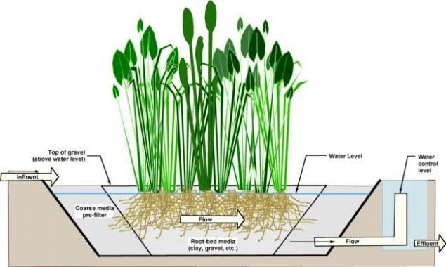 O que esta imagem revela é algo raro na engenharia de edifícios: um sistema que replica o próprio funcionamento da natureza para purificar a água.